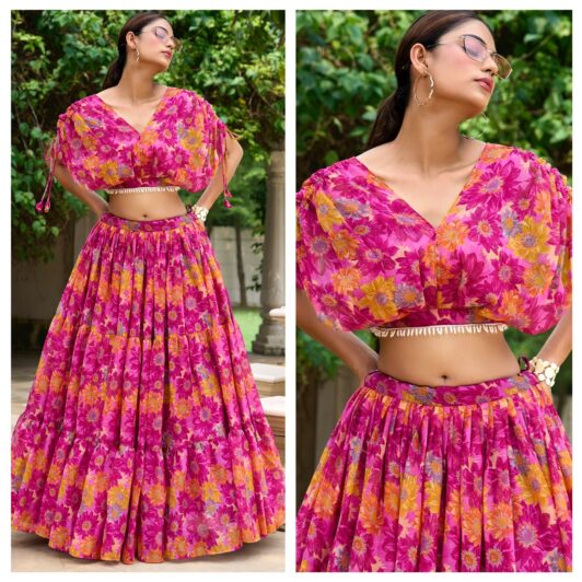 PINK CHIFFON FLORAL PRINT CO-ORD SET PREORDER SPECIAL LNB1132PNK