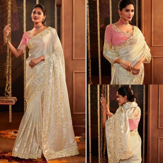 New designer silk saree with embroidery work and unstitched blouse
