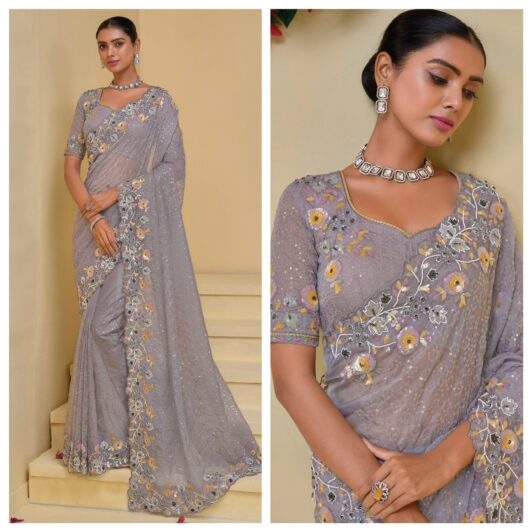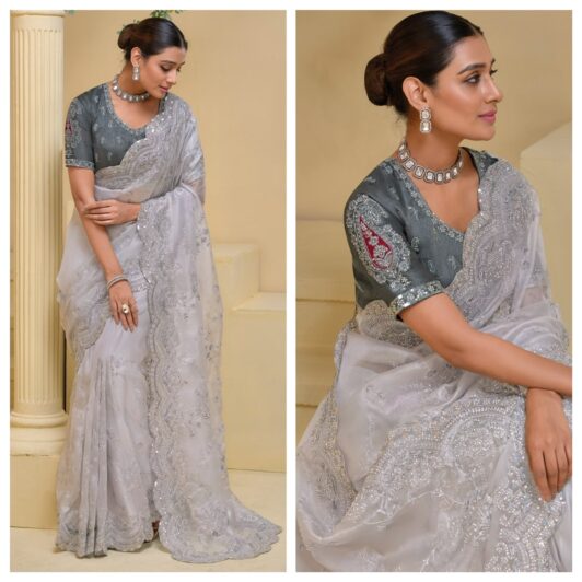 GREY PURE SOFT SHINE SAREE PREORDER SPECIAL MN7512
