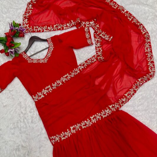 BRIGHT RED READY MADE GOWN SAREE PREORDER SPECIAL HB128A