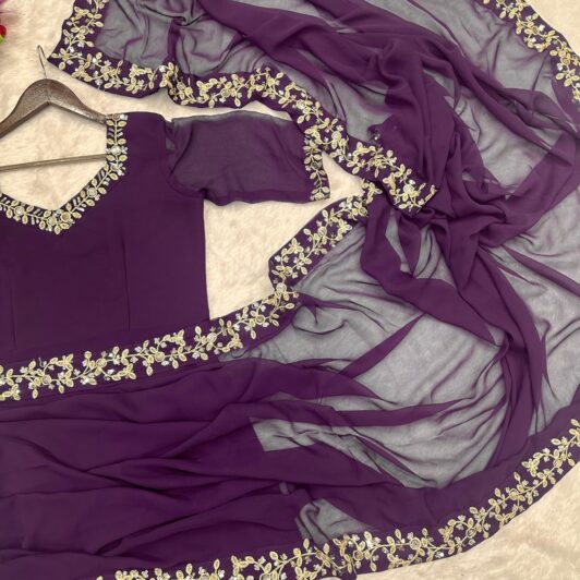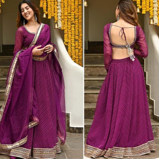 PURPLE GEORGETTE LEHERIYA LEHENGA PREORDER SPECIAL ZEE15049PUR