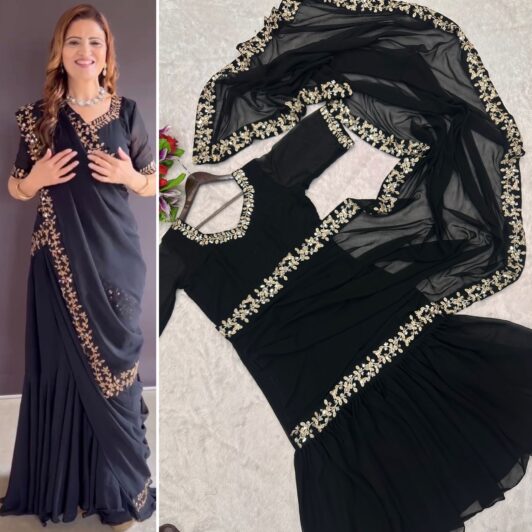 BLACK READY MADE GOWN SAREE PREORDER SPECIAL HB128C
