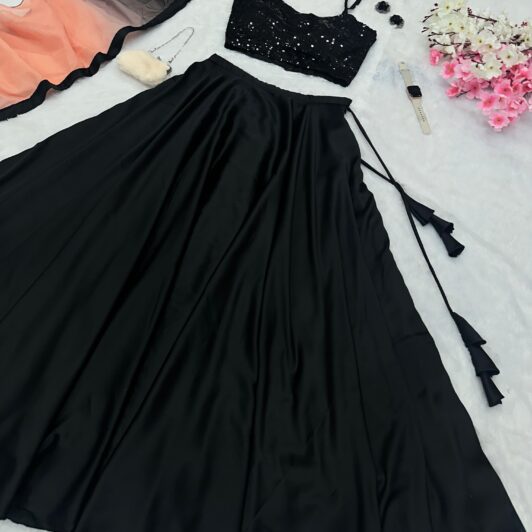 BLACK SEQUIN SATIN SILK READY MADE LEHENGA PREORDER SPECIAL SC230