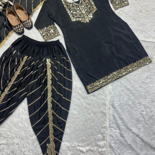 BLACK CHINON SILK READY MADE DHOTI SUIT PREORDER SPECIAL MF437