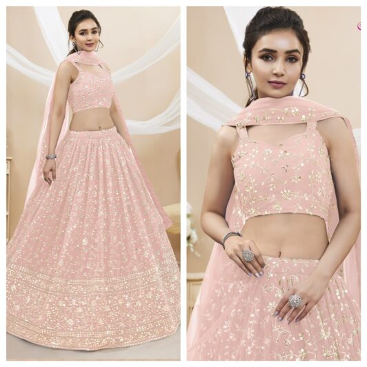 PINK GEORGETTE SEQUIN LEHENGA PREORDER SPECIAL ZEE403