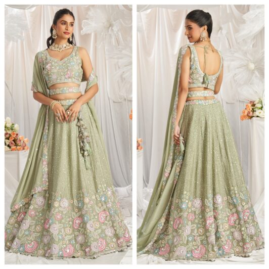 SEA GREEN CHINON LEHENGA PREORDER SPECIAL HOP6067SG