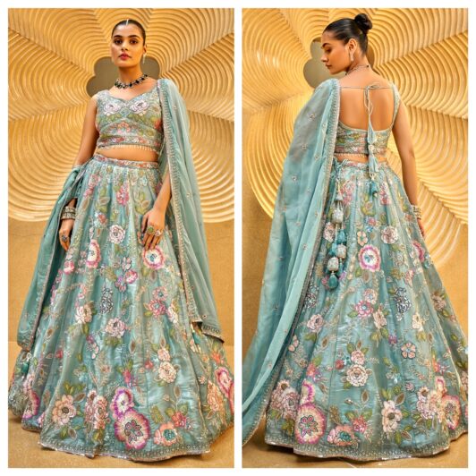 SEA GREEN ORGANZA LEHENGA PREORDER SPECIAL HOP6095SG