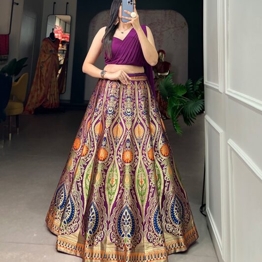 PURPLE BANARASI SILK READY MADE LEHENGA PREORDER SPECIAL LNB2018D