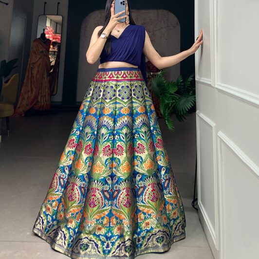 ROYAL BLUE BANARASI SILK READY MADE LEHENGA PREORDER SPECIAL LNB2018RB