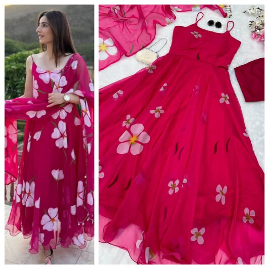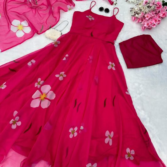 PINK ORGANZA SILK READY MADE ANARKALI STYLE GOWN PREORDER SPECIAL SC161B