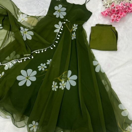 GREEN ART SILK GOWN PREORDER SPECIAL ANA8902