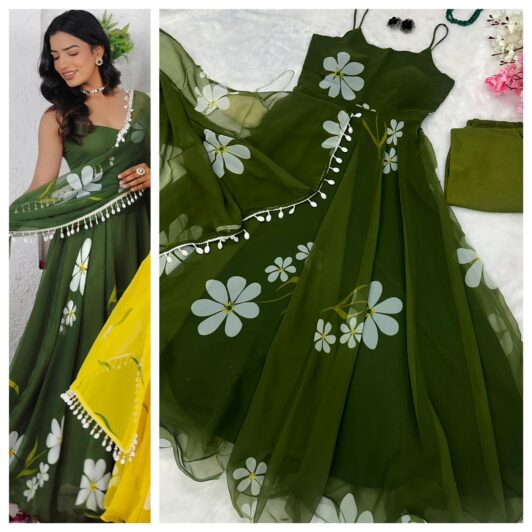 GREEN ORGANZA SILK READY MADE ANARKALI STYLE GOWN PREORDER SPECIAL SC161E