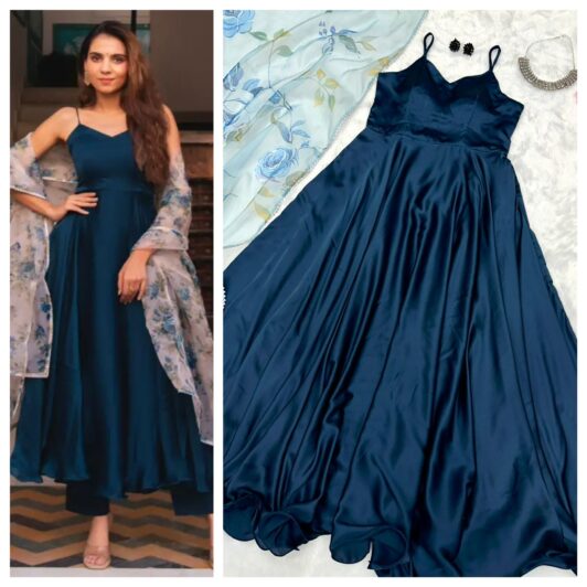 TEAL BLUE SATIN SILK READY MADE ANARKALI SUIT PREORDER SPECIAL SCB