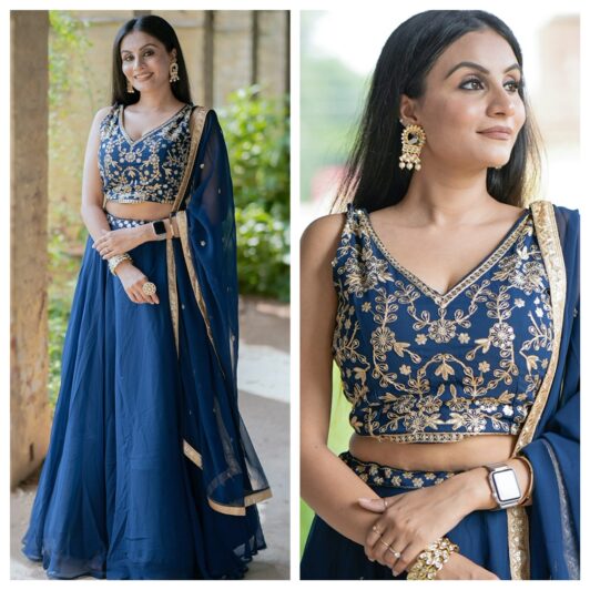 NAVY BLUE BANARASI SILK READY MADE LEHENGA PREORDER SPECIAL LNB2018C