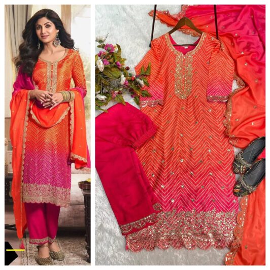 ORANGE CHINON SILK READY MADE BANDHANI SUIT PREORDER SPECIAL LG1880A