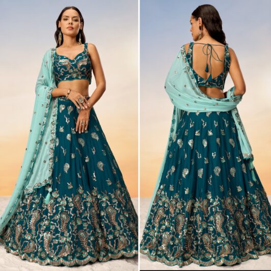 New designer chiffon lehenga with sequin and thread embroidery work